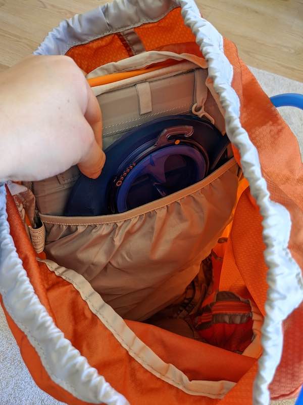 水を入れたこのハイドレーションをこのポケットに収納します。