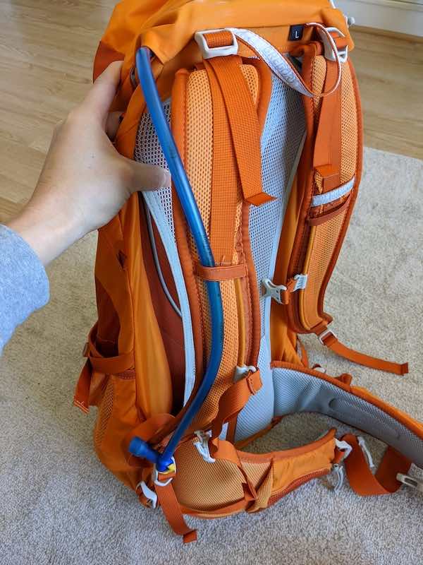 登山やハイキング用のザックには写真のようにハイドレーションを収納するポケットが既についているものがほとんどなので、