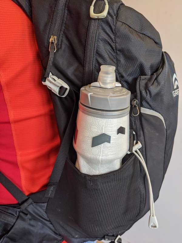 ハイドレーションの収納ポケットは背中側にあるため、背中の熱でどんどん温まって、どんどんぬるくなっていきます。