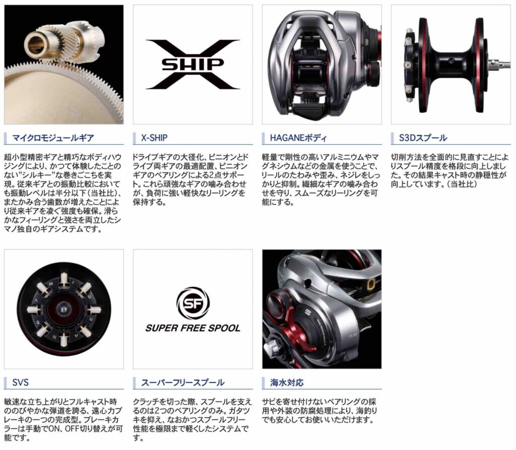 ビッグベイトやジャイアントベイトを投げやすいように、従来のリールより、より強いブレーキをかけられるようになったとのことなので、重たいルアーをPEラインでフルキャストして遠投するような使い方をする釣りには、強い味方になってくれるような気がします。
